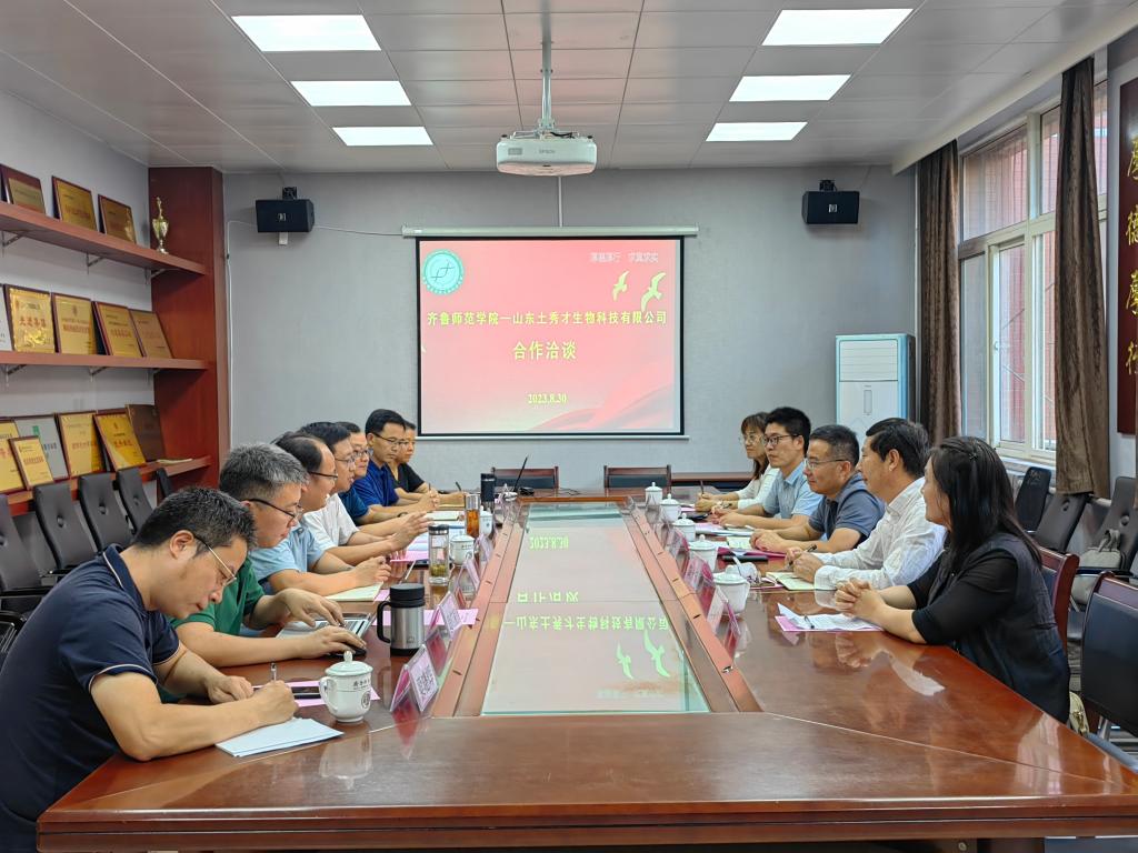 8月30日下午,山东土秀才生物科技有限公司总经理赵钦刚一行4人到校交流,学校党委副书记、校长郑秀文热情接待来访并出席交流座谈会。双方就深化合作,推进产学研协同创新等方面进行了深入探讨。会议由科研处处长孙洪兆主持。