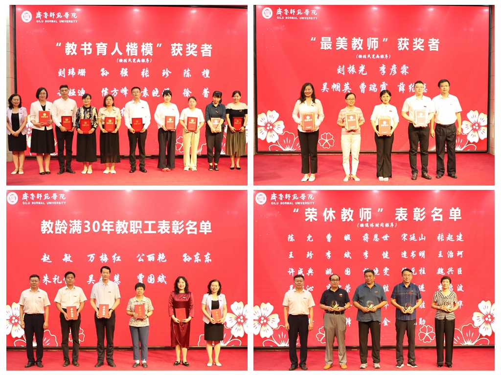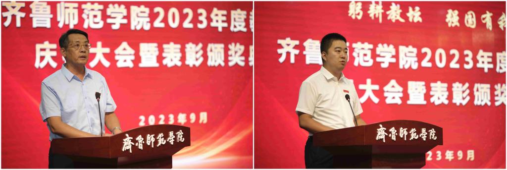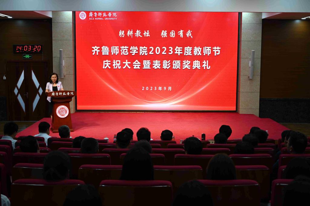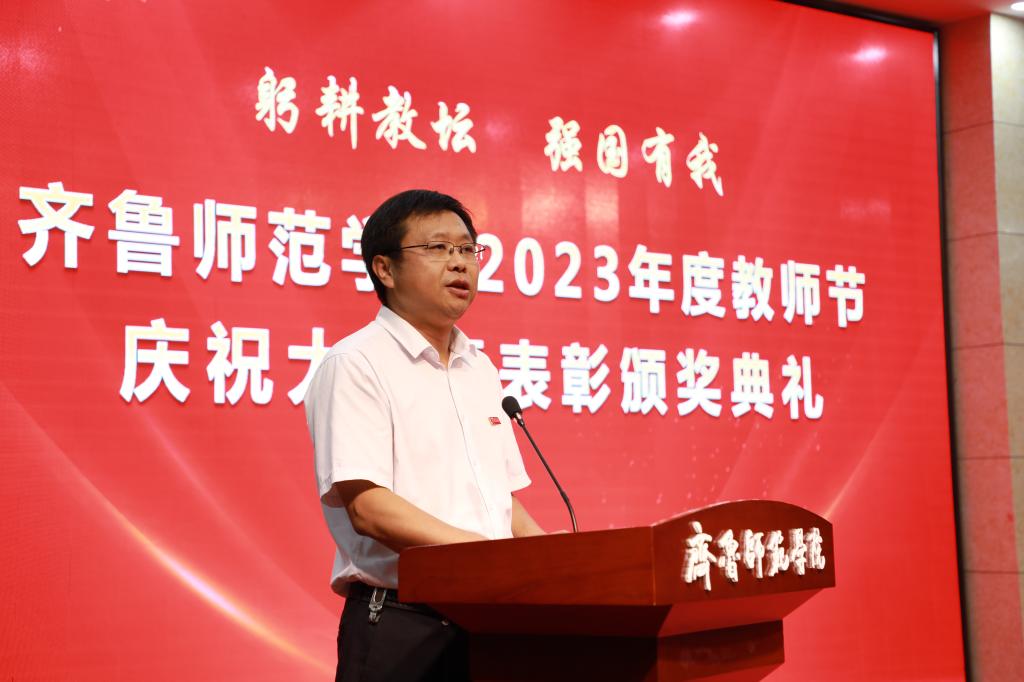 郑秀文致辞。他代表学校党委、行政,向全体教职员工致以节日的问候,向老教师、老同志以及受到表彰的“最美教师”和“教书育人楷模”致以崇高敬意,向新入职的年轻教师表示诚挚欢迎。郑秀文回顾了学校第三次党代会以来取得的突出成就,并指出,高水平的学校离不开高水平的教师队伍,多年来,学校始终坚持把高质量教师队伍建设作为“人才强校”发展战略,打造了一支师德高尚、结构合理、业务精湛、充满活力的教师队伍。以2023年度“齐鲁最美教师”刘振光教授为代表的一大批优秀教师,立德树人,潜心教学,以身治教,奠定了学校建设高水平师范院校的坚强之基,凝聚起学校高质量发展的磅礴之力。郑秀文代表学校党委、行政对全体教师们的努力付出表示真挚感谢!