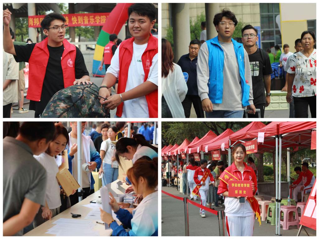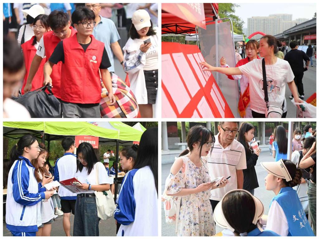 各学院精心策划,创新性开展迎新工作。在报到处,各学院安排志愿者引导新生入学,有条不紊地引导新生办理报到手续,为新生及家长们提供指引和帮助。各学院设计了精美的展架展板、艺术造型、宣传画册、签名墙等,积极宣传学院办学成就和办学理念,让新生更好更快地了解自己的学院和专业。外国语学院精心策划,设计打造了专属吉祥物“外小语”,为新生们定制了发夹、钥匙扣、卡套等周边文创产品,得到了大家的喜爱和热捧;报到日恰逢生命科学学院生物科学(师范类)专业郝语欣、园林专业胡璇的生日,师兄师姐用自己亲手制作的园林作品“春芽”“雨萌”予以赠送,让新生感受到了来自学院的热情与温情;化学与化工学院为家长们提供专门的休息区域,学长学姐为每一位新生写信、寄语新生,抽盲盒环节欢乐不断;音乐学院设置了“洞洞乐抽奖”活动,现场免费为同学们用拍立得相机拍照,并送上了定制版钥匙扣和书签,设置音院集结号地图,小萌新们在地图上打卡了自己的家;美术学院为新生准备了精美的纪念品,设置了签名墙和心愿墙,书法学新生用专业所长为在场同学们写下了祝福……