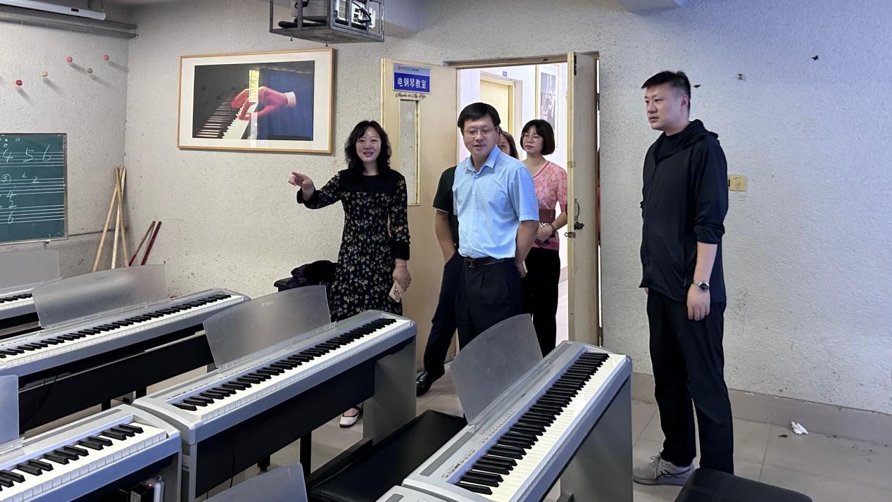 郑秀文先是来到音乐学院琴房、排练厅、电钢琴教室等教学场所进行实地走访查看,并对琴房的管理使用、授课类型及特点、教学资源的排布等情况进行了详细了解。