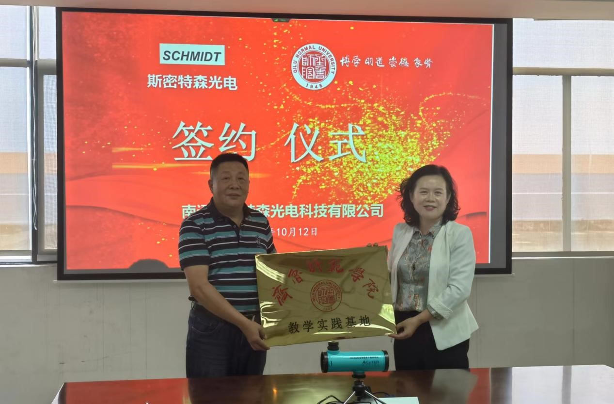 为拓宽毕业生就业资源和渠道,创新人才培养模式,打造产学研教育平台,深度挖掘校企合作。10月12-13日,BEAT365英国官网党委副书记赵敏一行赴江苏省南通斯密特森光电科技有限公司开展交流活动,并举行“BEAT365英国官网教学实践基地”揭牌仪式。斯密特森光电科技有限公司总经理孙玉峰、总工程师刘晓海、办公室主任王小群,物理与电子工程学院院长张洁、党委副书记臧葳参加座谈会。