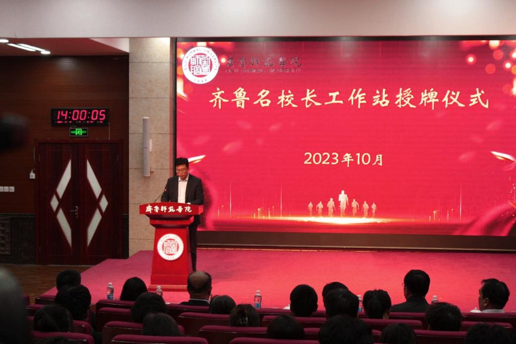 授牌仪式上,李伯伟作致辞讲话。他首先代表学校党委、行政对三位校长表示热烈欢迎,介绍了学校的发展历史、办学理念、办学特色,在服务基础教育方面的突出优势以及在师范类专业认证工作中取得的成绩。他表示,学校积极推动探索基于新师范理念下的信息科技师资职前培养与职后发展一体化建设,希望借助齐鲁名校长工作站,搭建教师专业发展平台,形成中学教师培养、培训、研究和服务一体的合作共同体,希望全体师范生能够珍惜学校创造的机会,提升自身从业技能和水平。