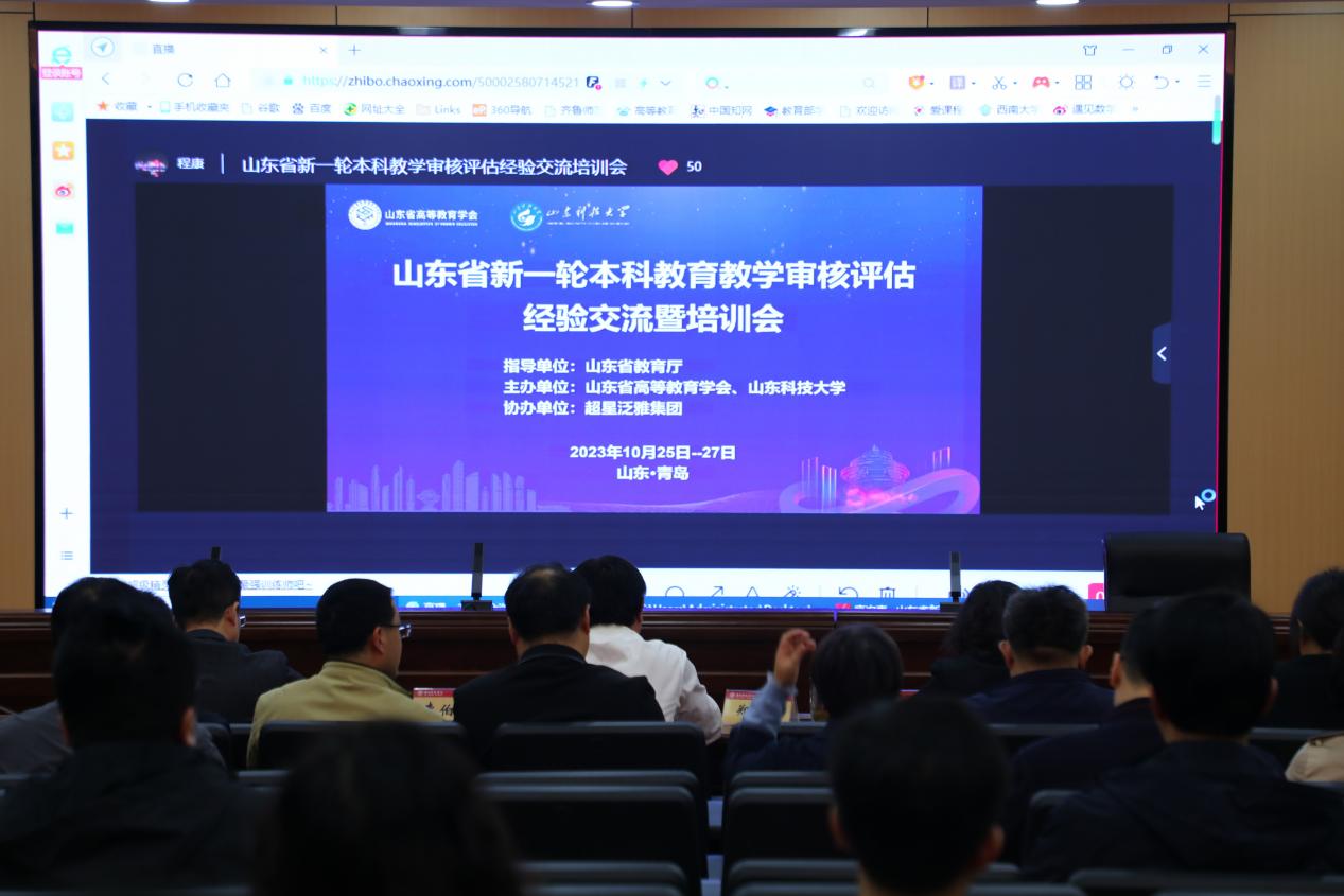 10月26日,BEAT365英国官网参加由山东省教育厅组织的山东省新一轮本科教育教学审核评估经验交流暨培训会。学校党委副书记、校长郑秀文,党委副书记赵敏,党委委员、副校长李伯伟,党委委员、副校长孙正,相关部门、单位负责人等以线上线下相结合的形式参加本次经验交流暨培训会。