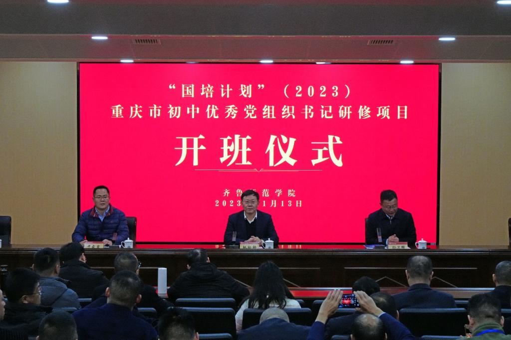 基础教育服务中心主任孙卫国、副主任于家富,来自重庆市初中学校校长50人、初中学校党组织书记50人共同参加开班仪式。
