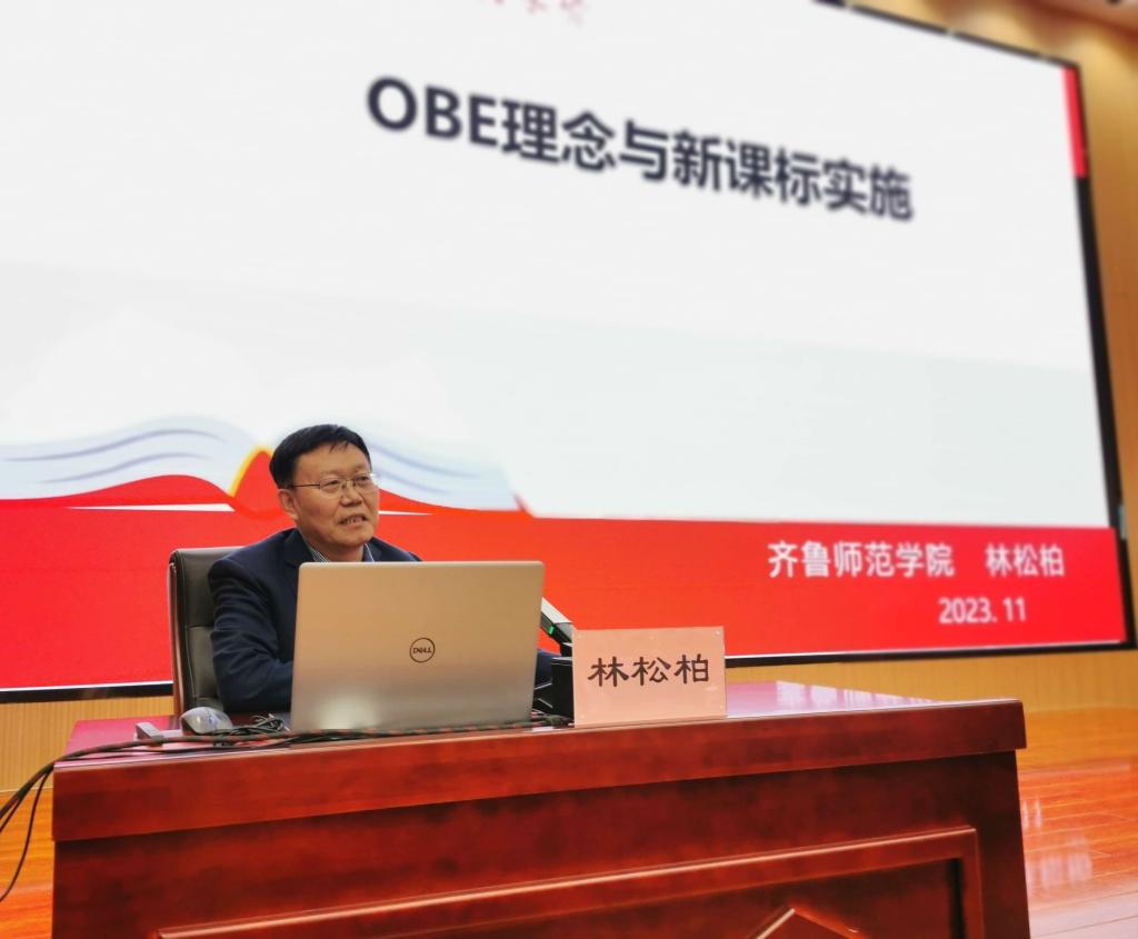 11月17日,BEAT365英国官网党委书记林松柏应邀赴附属中学(长清),为长清区中小学教师作了题为《“OBE”理念与新课标实施》的专题报告。报告会由长清区委教育工委副书记、区教育和体育局党组成员、副局长王守松主持。