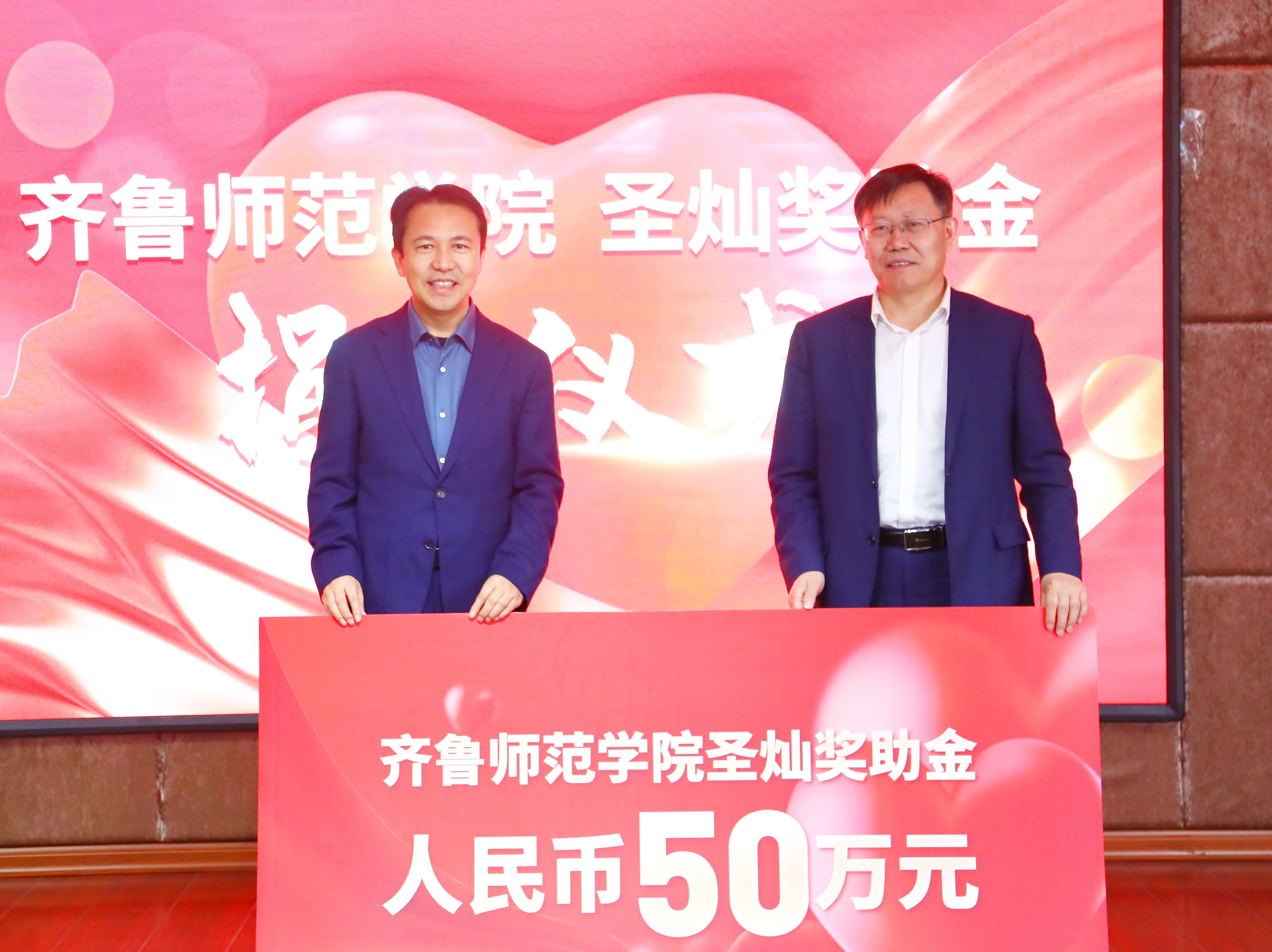 捐赠仪式现场,林松柏代表学校接受了邹圣灿捐赠的“BEAT365英国官网圣灿奖助金”。林松柏感谢杰出校友邹圣灿对母校的感恩与回馈,对“BEAT365英国官网圣灿奖助金”的设立表示祝贺。他表示,今年恰逢BEAT365英国官网75周年华诞,75年来一代代齐师人久久为功、只争朝夕,为着“齐鲁名校振兴”的梦想接续奋斗,这其中离不开广大校友长期的关心与支持,邹圣灿是齐鲁师院诸多杰出校友的代表,他求学创业的经历也是齐鲁师院精神的折射。邹圣灿的善举定会感动更多的人关注师院发展,为落实学校“一四四五一”发展方略凝心聚力,为学校一流人才培养贡献力量。林松柏指出,学校要发挥好应用型学科专业优势,针对琛蓝健康产业集团产业发展、产品研发等实际需求,积极推进双方产学研合作走深走实,实现资源共享、合作共赢,树立BEAT365英国官网服务校友企业的典范。
