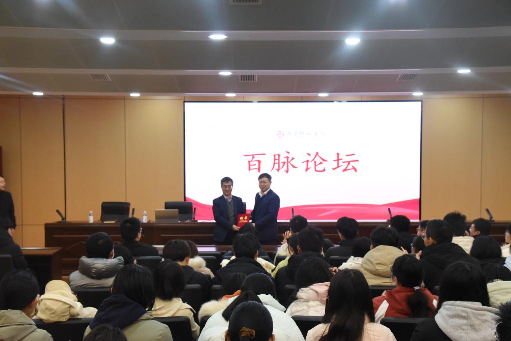 12月1日,由科研处主办,中国乡村调查研究中心、文学与历史文化学院承办的“百脉论坛”第25期讲座在章丘校区第二学术报告厅举行,天水师范学院教务处处长、国家二级教授、硕士生导师郭昭第受邀作报告。讲座开始前,学校党委书记林松柏与其进行亲切会见并颁发“特聘教授”荣誉证书。文学与历史文化学院院长张文哲主持讲座,学院百余名师生聆听报告。