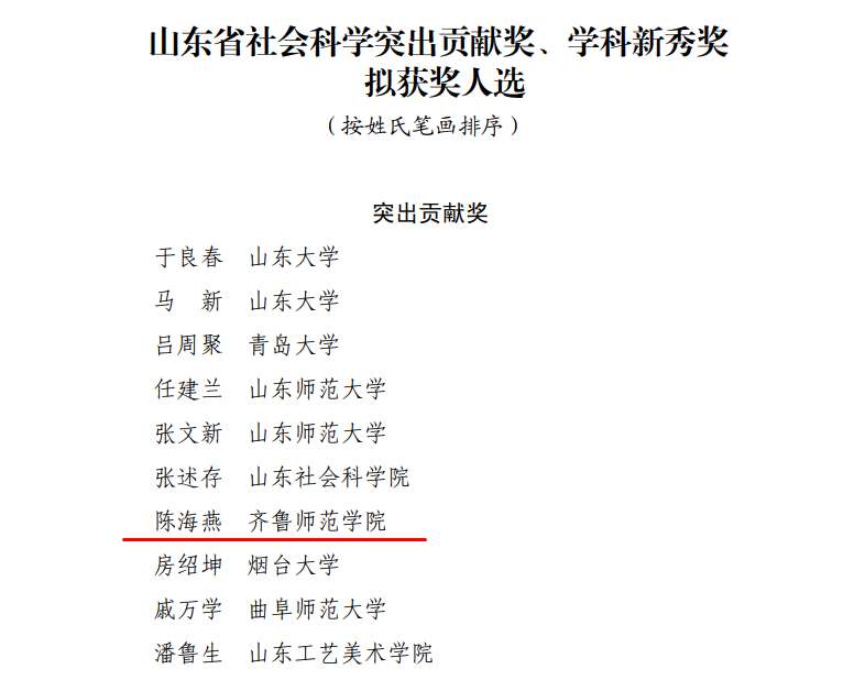 重大喜报!陈海燕教授荣获第十六届山东省社会科学突出贡献奖