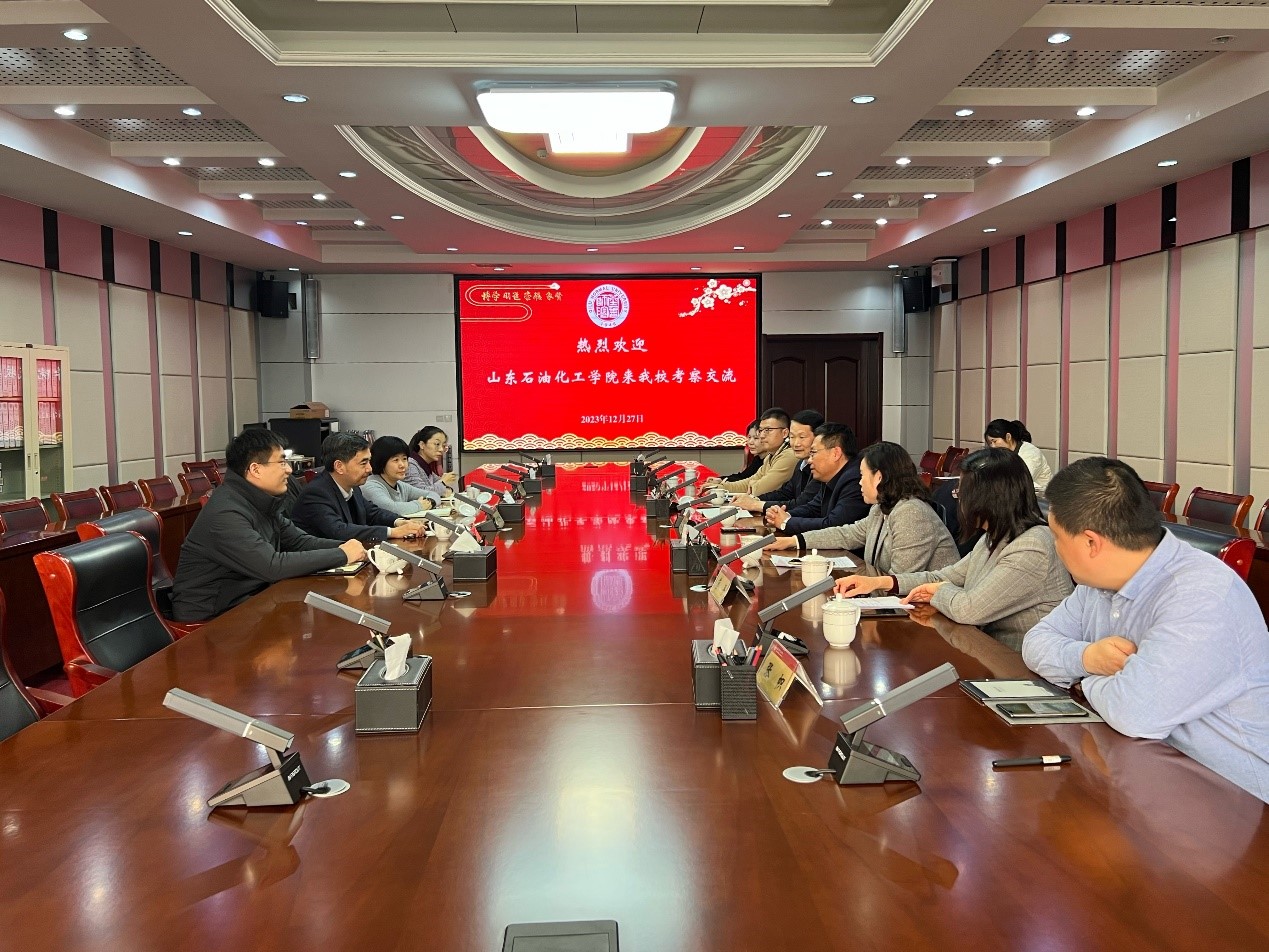 12月27日,山东石油化工学院党委委员、副校长张思峰一行4人到校考察交流。学校党委副书记、校长郑秀文,党委副书记赵敏接待考察团一行。双方就大学生教育管理服务、共青团工作、创新创业等方面进行了座谈交流。座谈会由赵敏主持。