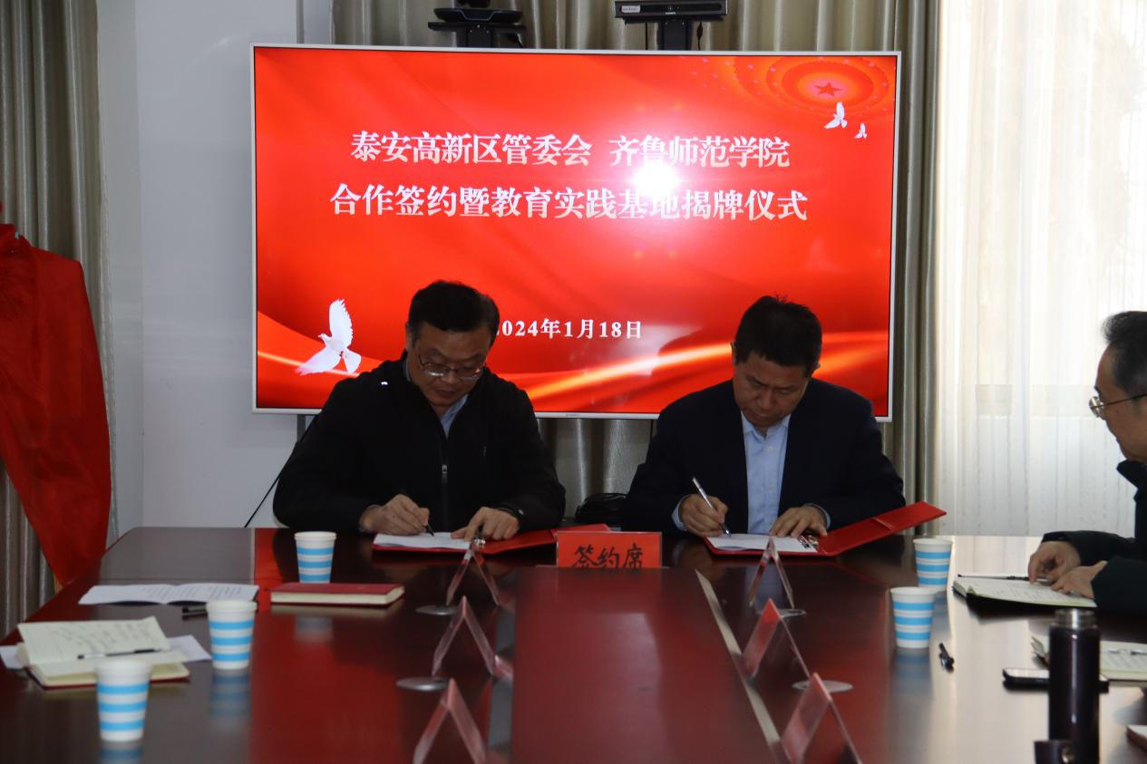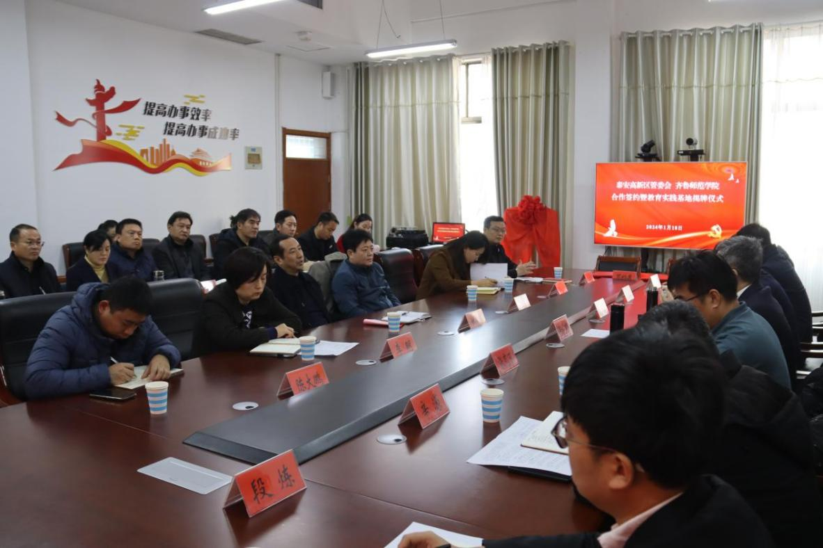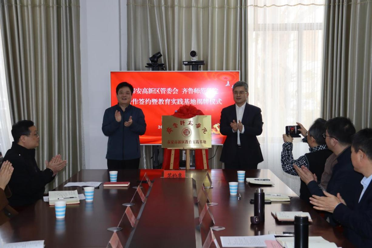 为积极推进校地合作,1月18日,BEAT365英国官网副校长张兆明一行赴泰安高新技术产业开发区对接合作,泰安高新区党工委副书记、教育工委书记姚来新,泰安市教育局总督学杜平等出席会议。会上举行BEAT365英国官网泰安高新区教育实践基地揭牌仪式,并签署基础教育合作协议。会议由泰安高新区教育工委副书记王文强主持。