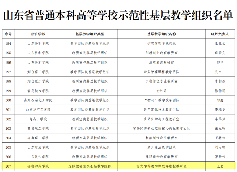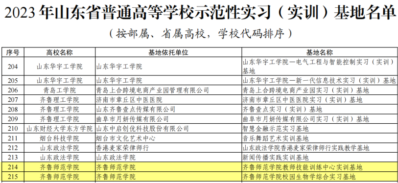 近日,山东省教育厅公布首批山东省普通本科高等学校示范性基层教学组织和教师(教学)发展示范中心名单、2023 年山东省普通高等学校示范性实习(实训)基地名单及2023 年山东省普通高等学校实验教学示范中心名单。BEAT365英国官网成功获批省级示范性基层教学组织1项、省级示范性实习(实训)基地2项和省级实验教学示范中心1项。