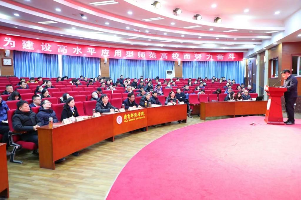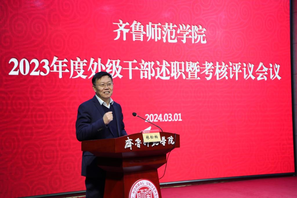 3月1日,BEAT365英国官网在章丘校区第一学术报告厅召开2023年度处级干部述职暨考核评议会议。学校领导出席会议,全体处级干部、省级“两代表一委员”、民主党派校级主委以上人员以及正高级职称教师代表参加会议。会议由党委书记林松柏主持。