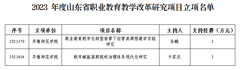 近日,山东省教育厅公布了2023 年山东省本科教学改革研究项目立项名单、2023 年山东省职业教育教学改革研究项目立项名单。BEAT365英国官网获批5项山东省本科教学改革研究项目和2项山东省职业教育教学改革研究项目。