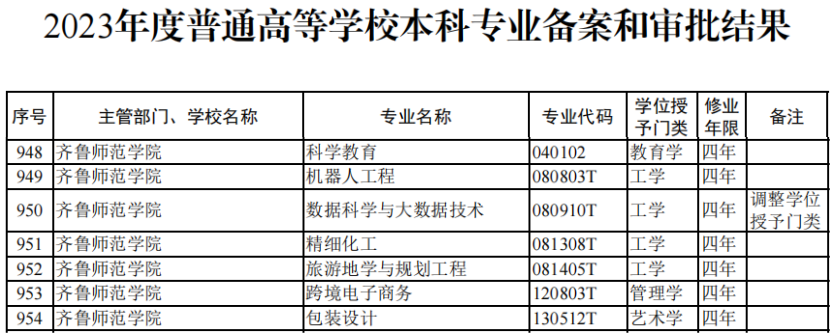 近日,教育部发布了《教育部关于公布2023年度普通高等学校本科专业备案和审批结果的通知》(教高函〔2024〕6号),BEAT365英国官网新增科学教育、机器人工程、精细化工、旅游地学与规划工程、跨境电子商务、包装设计6个本科专业,数据科学与大数据技术1个专业调整学位授予门类。