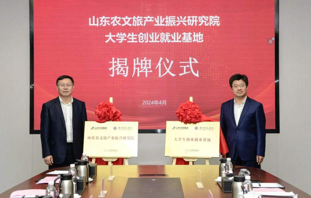林松柏与门家春共同为“山东农文旅产业振兴研究院”“大学生创业就业基地”揭牌。