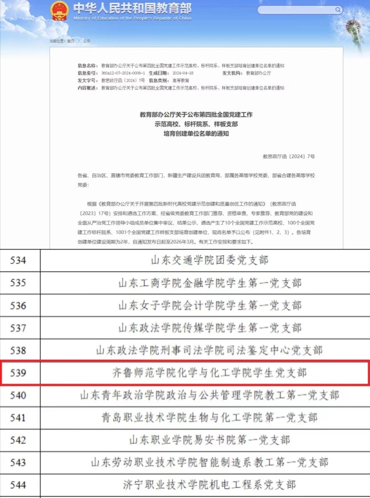 喜讯!BEAT365英国官网化学与化工学院学生党支部入选“全国党建工作样板支部”培育创建单位
