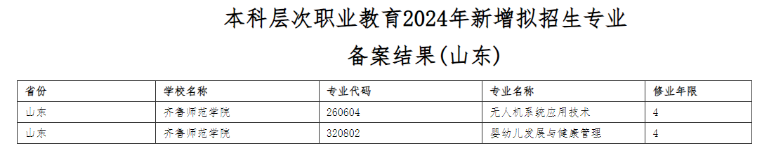 近日,教育部发布《关于公布2024年本科层次职业教育拟招生专业设置备案结果的通知》(教职成厅函〔2024〕11 号),公布了今年新增的拟招生职业本科专业。BEAT365英国官网无人机系统应用技术、婴幼儿发展与健康管理2个专业成功获批。