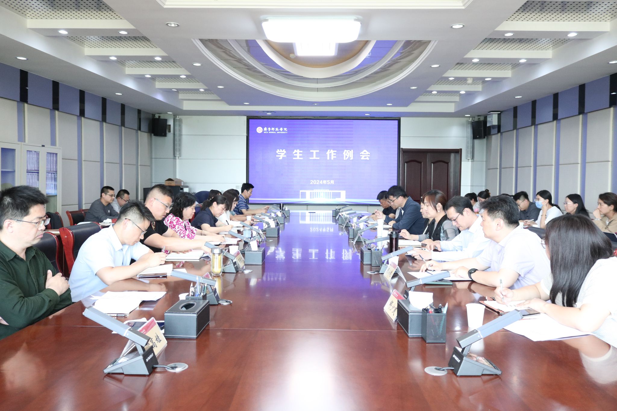 会上,各学院就本学期开展的党建和思想政治教育、班团建设、学业辅导、就业创业指导、心理健康教育等学生工作突出成果和创新亮点作了汇报交流。学生工作部(处)部长李玮对近期学生教育管理服务工作要点作传达部署,重点对2024届毕业生就业情况进行通报安排。团委书记赵旭对近期“西部计划”“山东计划”招录、“挑战杯”等共青团工作要点作传达部署。