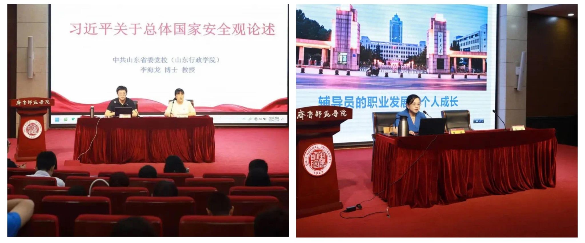 首场报告邀请中共山东省委党校(山东行政学院)硕士生导师、省委组织部名师送教师资库专家成员李海龙教授主讲。他以《习近平关于总体国家安全观论述》为题,带领学员深刻分析了当前国际国内形势,系统深入地解读了总体国家安全观的核心要义,更加坚定守牢高校意识形态阵地,积极构建总体国家安全观的信心和决心。