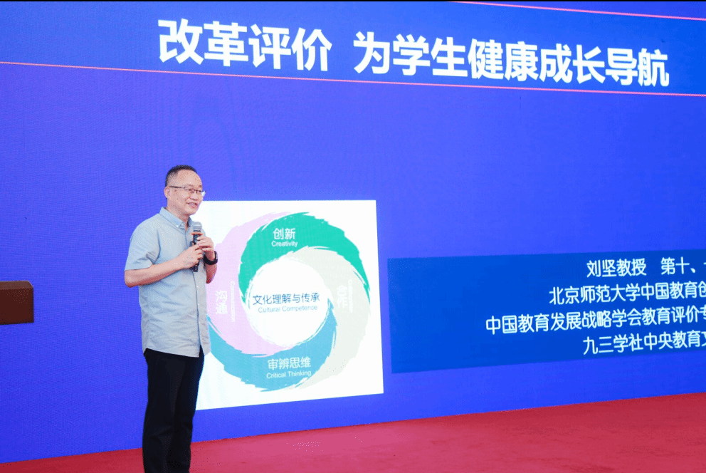 国家督学、北京师范大学教授、中国教育创新研究院院长刘坚围绕教育评价改革和当前的形势,从“对我国教育发展的基本判断”“谨防过程性评价被窄化和再功利化”“创新人才早期发展与培育”“规范办学行为有效提升学生幸福指数”“评价要在关键环节下功夫”等五个方面作了题为《改革评价 为学生健康成长导航》的主旨报告。