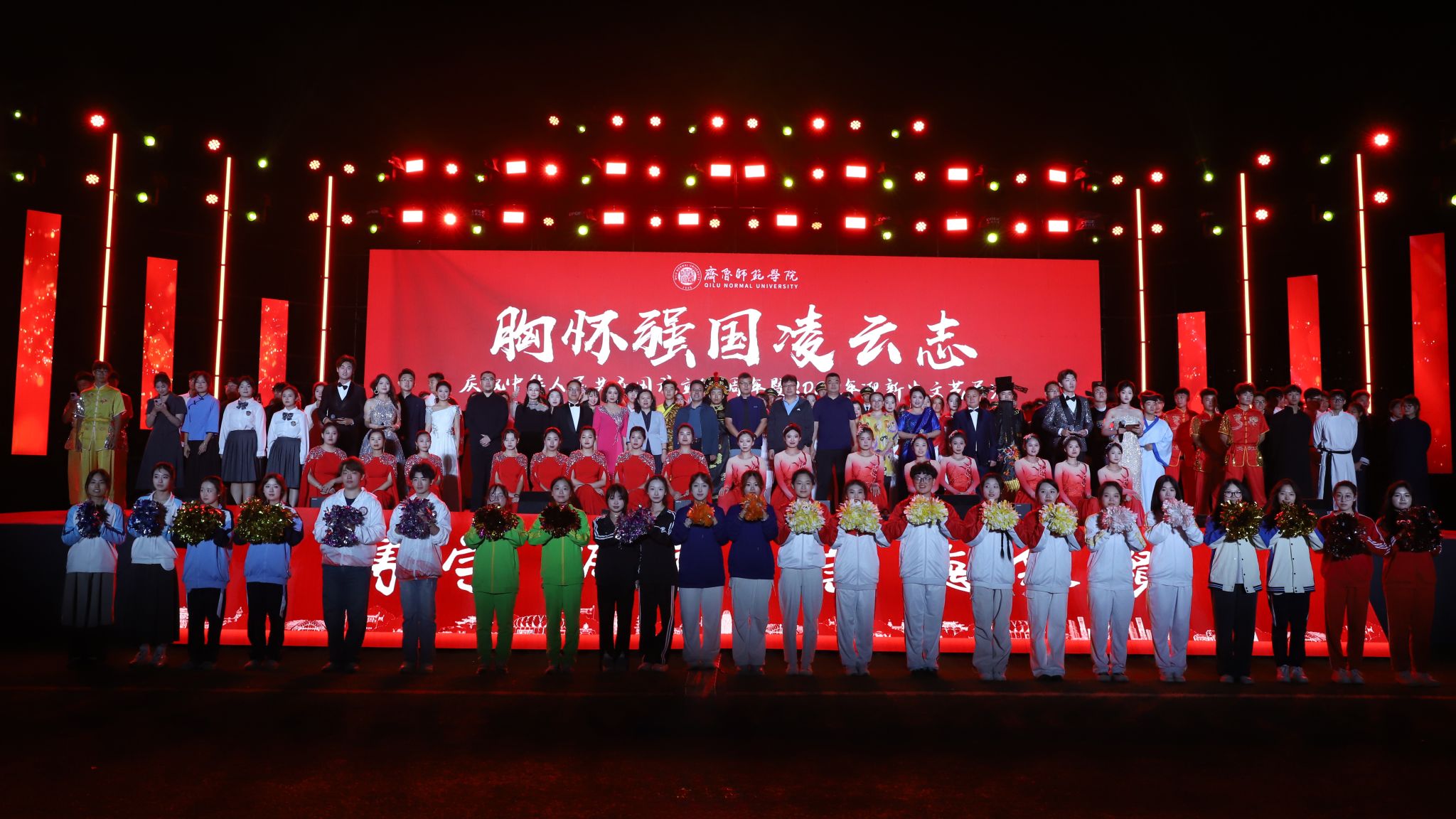 9月26日晚,“胸怀强国凌云志”庆祝中华人民共和国成立75周年暨2024年迎新生文艺展演在章丘校区体育场隆重举行。学校党委副书记赵敏,党委委员、纪委书记、监察专员高明辉,党委委员、统战部部长宋新刚,党委委员、宣传部部长孙磊出席文艺展演。