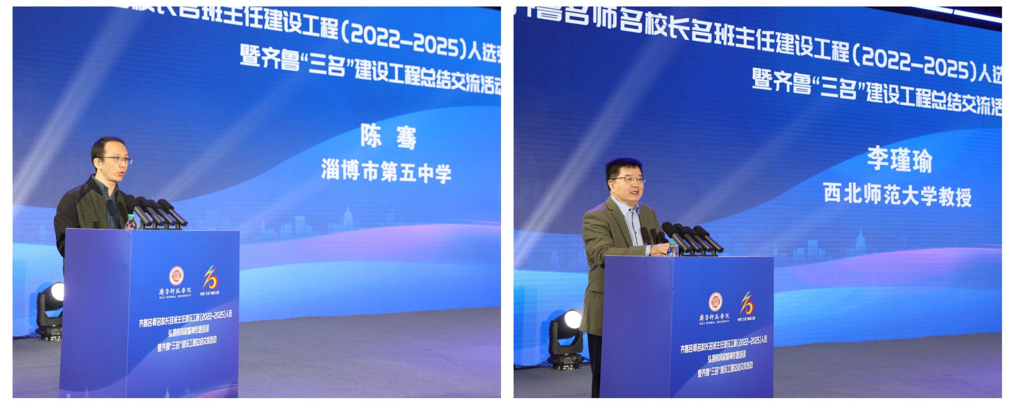 齐鲁名班主任建设工程人选、淄博市第五中学教师陈骞,齐鲁名师建设工程导师、西北师范大学教授李瑾瑜分别作为学员和专家导师代表,分享了各自的心得体会以及对齐鲁“三名”建设工程的期待和祝愿。