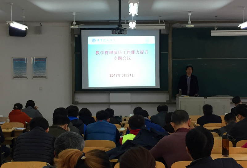 3月21日下午,BEAT365官网于章丘校区1号教学楼A207召开了“教学管理工作队伍工作能力提升专题会议”。林松柏校长、张福建副校长出席了会议。教务处(评建办)、教学质量监控中心、实验管理中心全体人员,人事处相关人员,各学院分管教学负责人、教学秘书、教务员、专职实验人员参加了会议。会议由林松柏校长主持。