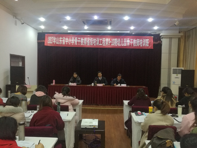 2017年11月30日,山东省中小学骨干教师培训工程2017年第9-10期幼儿园骨干教师培训班开班典礼在济南举行。副校长张福建等领导出席并讲话。