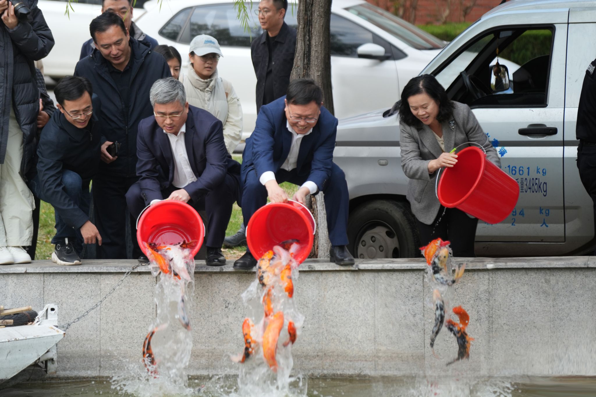 活动伊始,林松柏代表全校师生对朱俊科教授的捐赠表达了感谢,在师生们期待的目光中,校领导们与相关工作人员一起将一尾尾色彩斑斓的锦鲤缓缓放入学校文脉湖中。