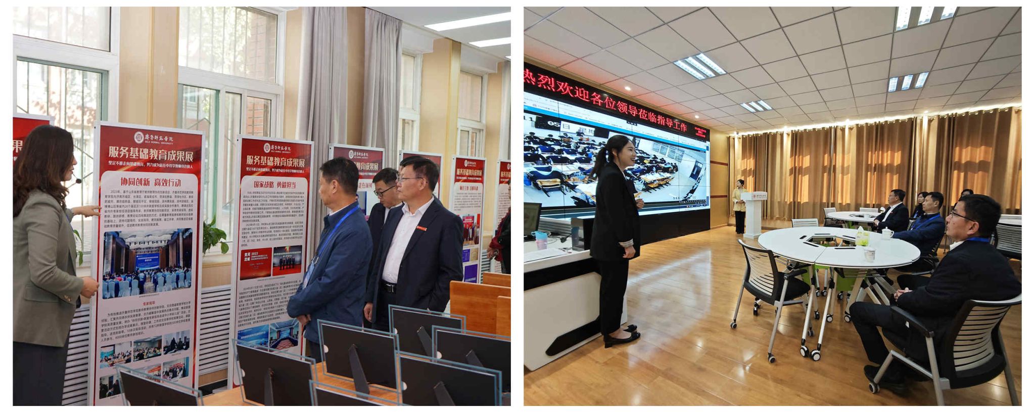 见面会后,全体校领导陪同专家组对学校教育教学工作进行了集中考察。专家组一行实地考察了图书馆、服务基础教育成就展、齐鲁文化长廊、国家语言文字推广基地(BEAT365英国官网)、教师技能中心、能源植物研究中心、化妆品功能研发中心、射电望远镜阵列等教育教学场所,观看了师生艺术作品展、文创产品展示、校园武术教学课堂、无人机专业技能展演等教育教学成果。
