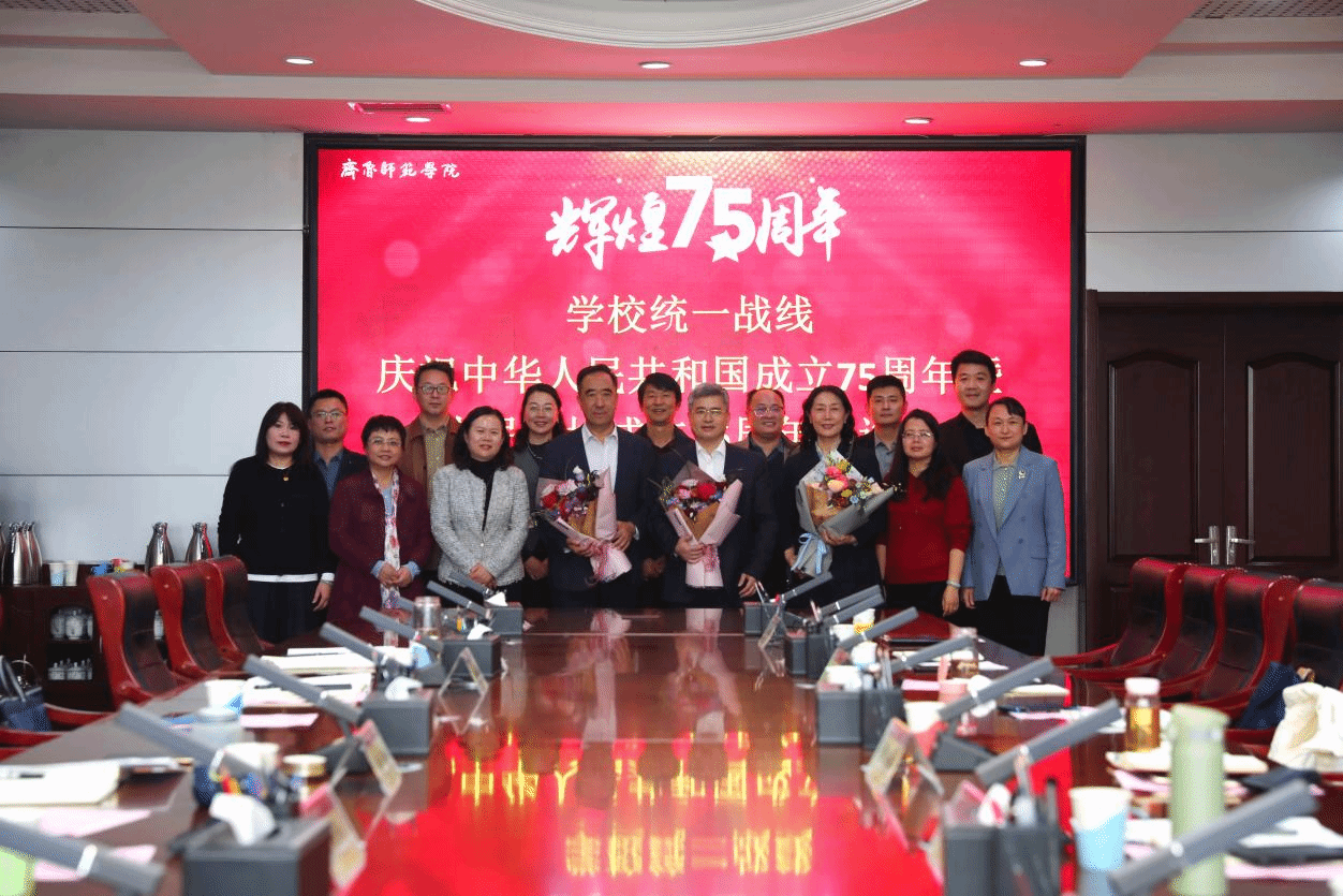11月11日下午,学校统一战线庆祝中华人民共和国成立75周年暨中国人民政治协商会议成立75周年座谈会在章丘校区第一会议室召开。学校党委副书记赵敏,省政府参事、原省政协常委、原学校副校长刘德增,省政协常委、无党派人士代表、副校长张兆明,党委组织部、党委宣传部负责人,统战组织负责人,部分二级学院党委书记,民主党派成员代表,无党派人士代表参加会议。会议由党委委员、统战部部长宋新刚主持。