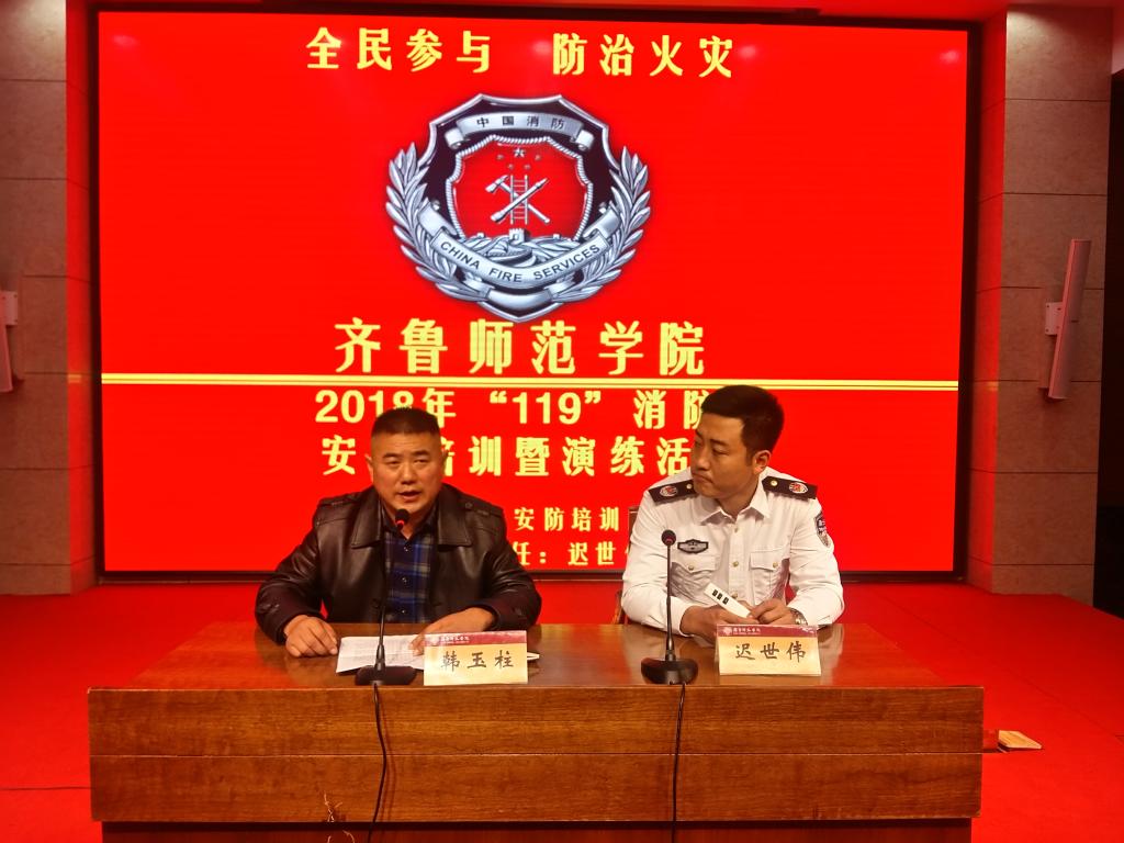 为进一步提升学校消防安全意识,消除消防安全隐患,11月9日下午在章丘校区举行BEAT365英国官网2018年“11.9”消防日活动。保卫处全体同志、安保工作人员、消防志愿者服务队、校内各经营场所消防安全负责人、学生餐厅工作人员和物业管理人员等300多人参加活动。活动由保卫处副处长韩玉柱同志主持。