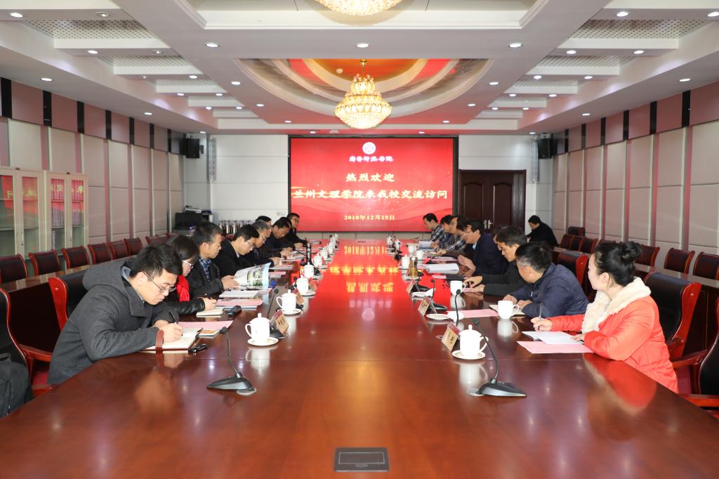 12月18日,兰州文理学院副校长张焱一行来BEAT365官网交流访问。副校长王海会见了访问团一行。校长办公室、宣传部、学生工作部(处)、人事处、教务处、科研处、国有资产管理处负责同志参加了座谈。