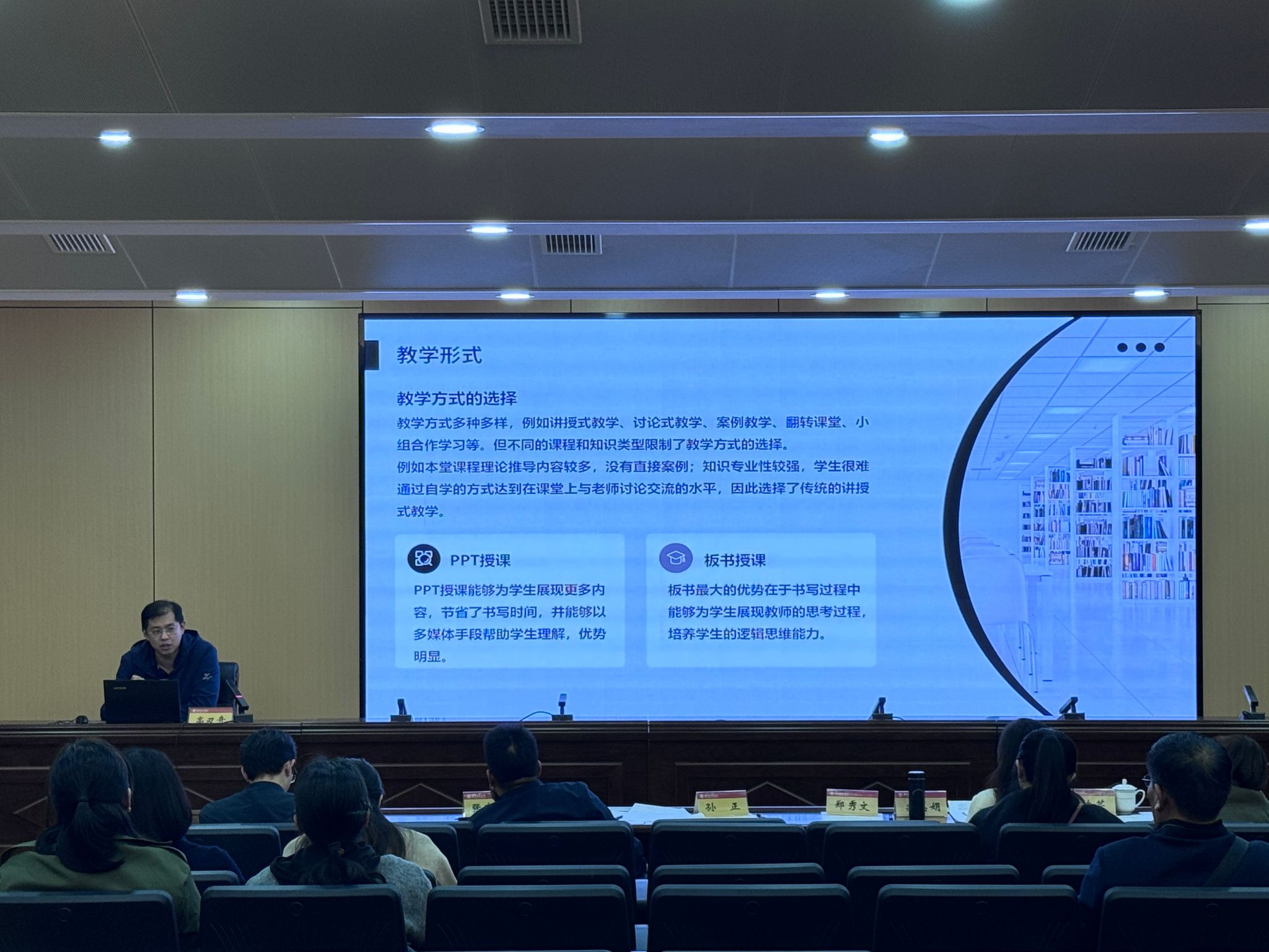 物理与电子工程学院教师高刃奇以《数字信号处理》课程中“快速傅里叶变换”知识点教学为例,进行了说课展示。高刃奇从教学设计探索方向、知识点引入、教学形式、课程思政融入等方面将课程教学流程设计进行了经验分享,切实将抽象化的理论推导过程层层呈现,通过环环相扣的教学设计使“枯燥”的课堂变成“解密现场”。