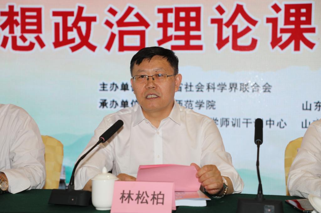山东省社科联党组副书记、副主席周忠高,山东大学马克思主义学院院长、博士生导师王韶兴教授,山东教育科学研究院思想政治教研员、国家课程标准教材道德与法治(山东人民出版社)主编周家亮等出席开幕式并在主席台就坐。党委副书记、校长林松柏教授致开幕词,周忠高副主席作重要讲话,副校长刘德增教授主持开幕式,来自全国各地的大中小学校思政课专家、学者、一线教师及在校博士、硕士和本科生共计120余人参加论坛。