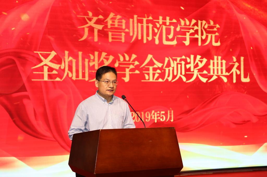 5月16日下午,2019年“圣灿奖学金”颁奖典礼在章丘校区图书馆报告厅举行。党委副书记、校长林松柏,党委委员、副校长张福建和BEAT365官网青岛校友会会长、青岛银色世纪健康产业集团有限公司董事长邹圣灿出席典礼,学生工作部副部长、校友办公室主任郝克宁,文学院院长杨峰、党总支副书记于江、副院长李术文及文学院300余名师生参加典礼,典礼由张福建副校长主持。