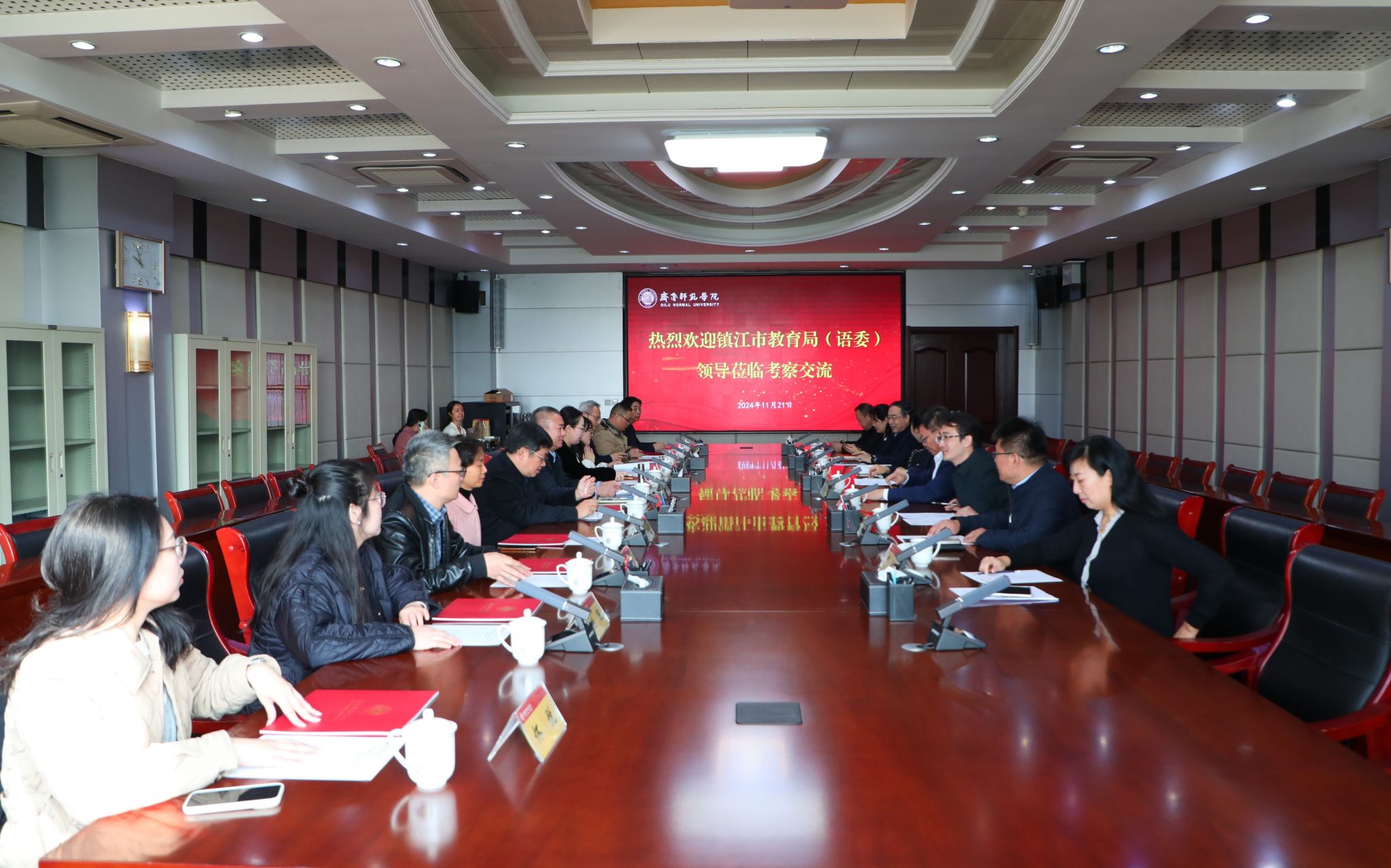 镇江市教育局副局长王斌对学校的热情接待表示感谢,并简要介绍了考察团成员情况。他表示,将借此次考察学习机会加强交流合作,助力双方高质量发展。镇江市教育局编委办主任裴伟介绍了镇江市的经济、教育、文化等情况。