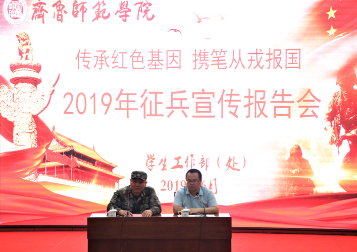 随后,济南市历下区人民武装部宫建主任从军队建设大局的角度讲解了大学生应征入伍对国防建设的重大意义,详细介绍了2019年历下区征兵的政策,包括征集对象条件、应征情况、优惠政策、部队待遇等方面等问题并详细回答了同学们提出的问题。