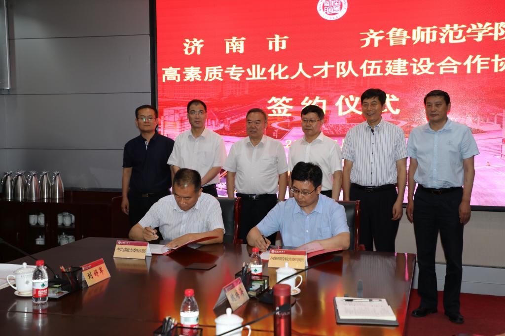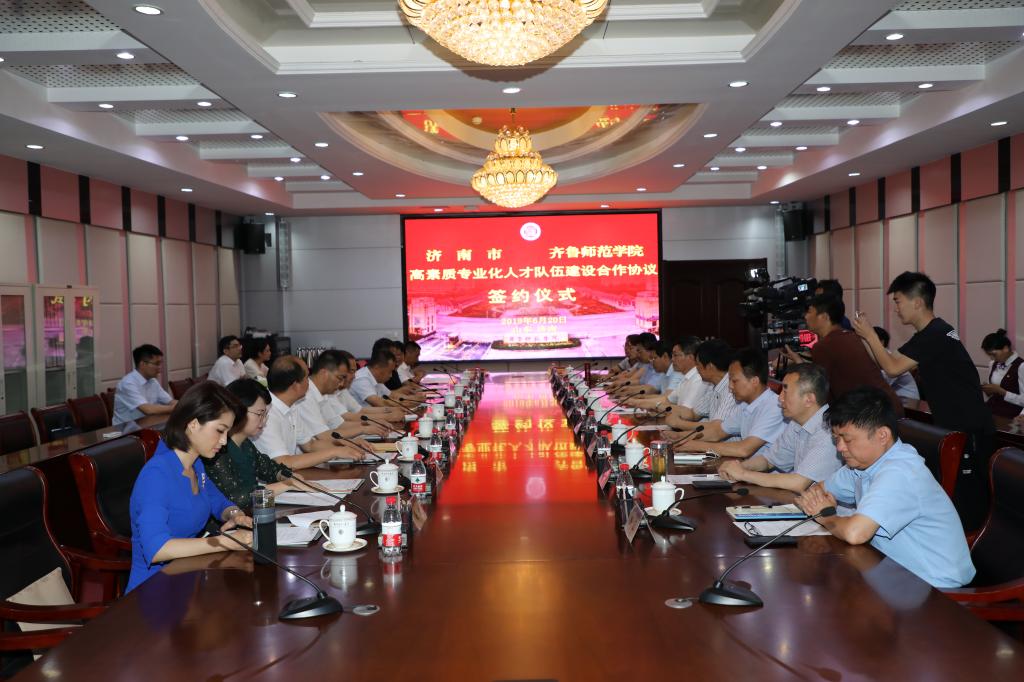 孙积港副主任在见面会上讲话,简要介绍了济南市贯彻落实习近平总书记视察山东重要讲话精神,围绕建设“大强美富通”现代化国际大都市,聚焦“双招双引”等中心工作,深入实施“寻找‘出彩型’干部行动”, 提升省会济南的公认度知名度美誉度,吸引更多高层次人才来济创新创业的本次活动背景。林松柏校长在讲话中对巡回报告团一行表示热烈欢迎和真诚感谢。他指出,在全党、全省开展“不忘初心、牢记使命”主题教育之际,“济南‘出彩型’好干部驻济高校行”巡回报告会走进BEAT365英国官网,使我们接受一次以“铭记育人初心”为主题的精神洗礼,为我们送来了“及时雨”。林松柏校长简要介绍了BEAT365官网的总体办学情况、办学定位和办学特色,并希望双方通过搭建交流合作平台,聚焦建设省会高素质专业化人才队伍,充分发挥学校的人才智力优势和省会组织工作实践优势,推动校地双方共建、共享、共赢。会上,学校党委组织部同济南市委组织部签署了高素质专业化人才队伍建设合作协议。