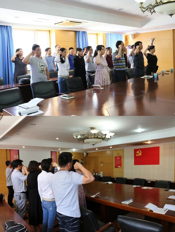 玄成贵书记带领党员同志深入学习了习近平总书记在“不忘初心、牢记使命”主题教育工作会议上的重要讲话精神,传达了王玉华书记提出的有关“即知即改”工作的要求,并对进一步加强支部党建工作作了部署与要求。随后,大会严格按照接收预备党员的组织程序,经到会的15名正式党员举手表决,一致同意接收黄晓敏同志为中国共产党预备党员,全体党员在宋新刚书记的带领下面对党旗重温了入党誓词。