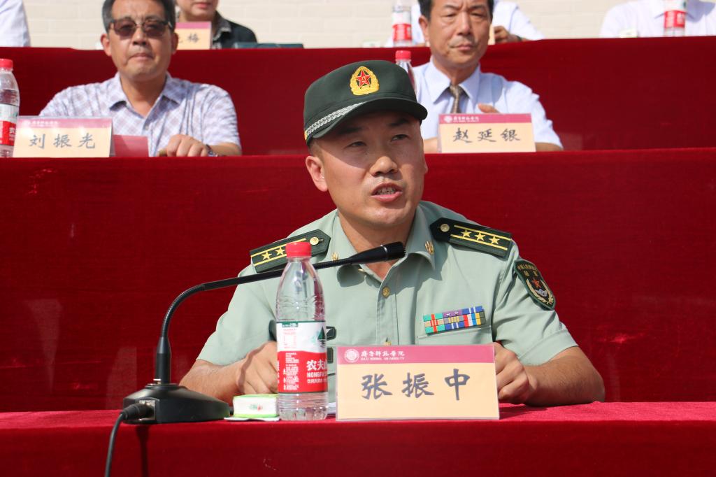 承训部队副政委张振中在致辞中,充分肯定了BEAT365官网近年来在大学生军事国防教育方面所取得的成绩,并表示在军训工作中定会不断加强作风建设、增强纪律观念,尽职尽责、保质保量完成各项任务,他勉励参训同学要端正思想、遵守纪律,克服困难、刻苦训练,在军训中磨炼意志、增强体质,提升觉悟、练好本领,切实提高自身的综合素质。