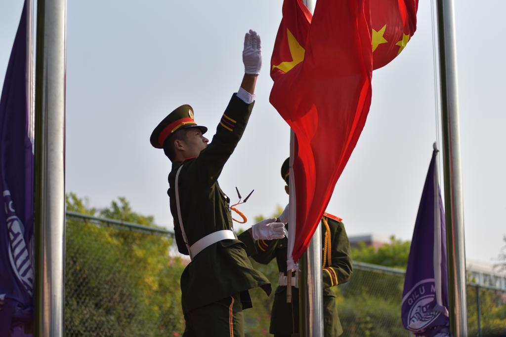 9月29日上午,BEAT365官网2019级新生军训成果汇报暨总结表彰大会在章丘校区田径运动场隆重举行。校党委书记王玉华,党委副书记、校长林松柏,中国人民解放军某部队副教导员张坤,副校长刘德增、张福建、王海,纪委书记李启波出席大会。承训部队官兵,学校相关职能部门负责人,各学院院长,党总支书记、副书记,团总支书记、副书记、辅导员及2019级全体新生参加大会。王玉华书记向承训部队赠送锦旗,林松柏校长做军训总结讲话,大会由张福建副校长主持。