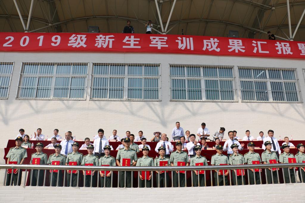 学校隆重举行2019级新生军训成果汇报暨总结表彰大会
