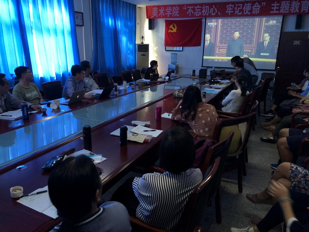 论证会当天恰逢国庆,林松柏校长同与会人员一起全程观看了庆祝新中国成立70周年阅兵仪式的实况电视转播,当直播画面里国歌奏响,国旗升起时,全体人员起立、唱国歌、对国旗行注目礼。大家在观看直播后激动万分、感触良多,纷纷表示盛况空前的阅兵仪式充分展示了祖国的繁荣与强盛,展示了中国人民对正义、和平的追求和向往,展示了中国军队的日益强大。作为新时代的高校人民教师,要与祖国同奋进,为实现中华民族伟大复兴的中国梦贡献力量。