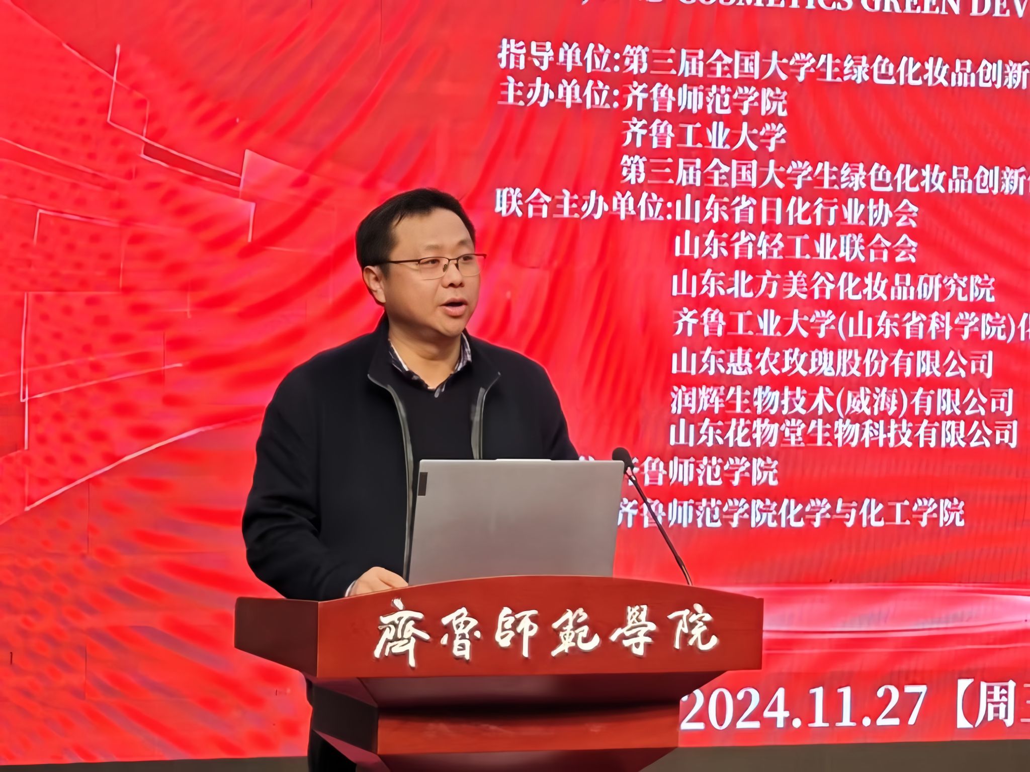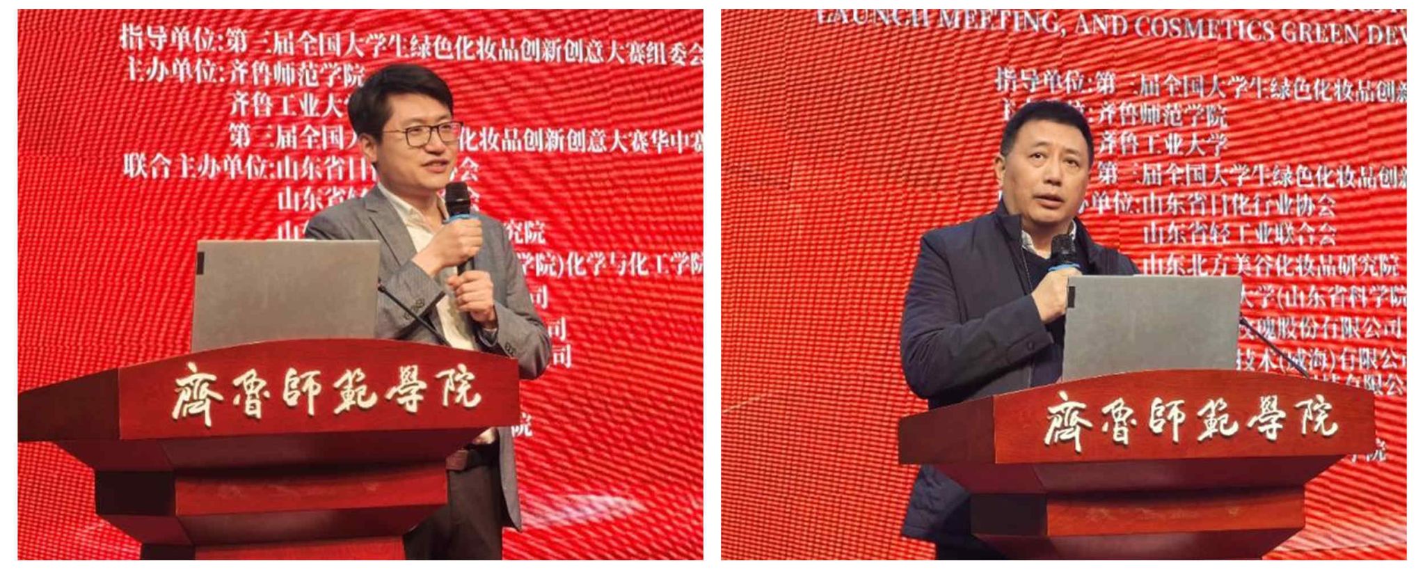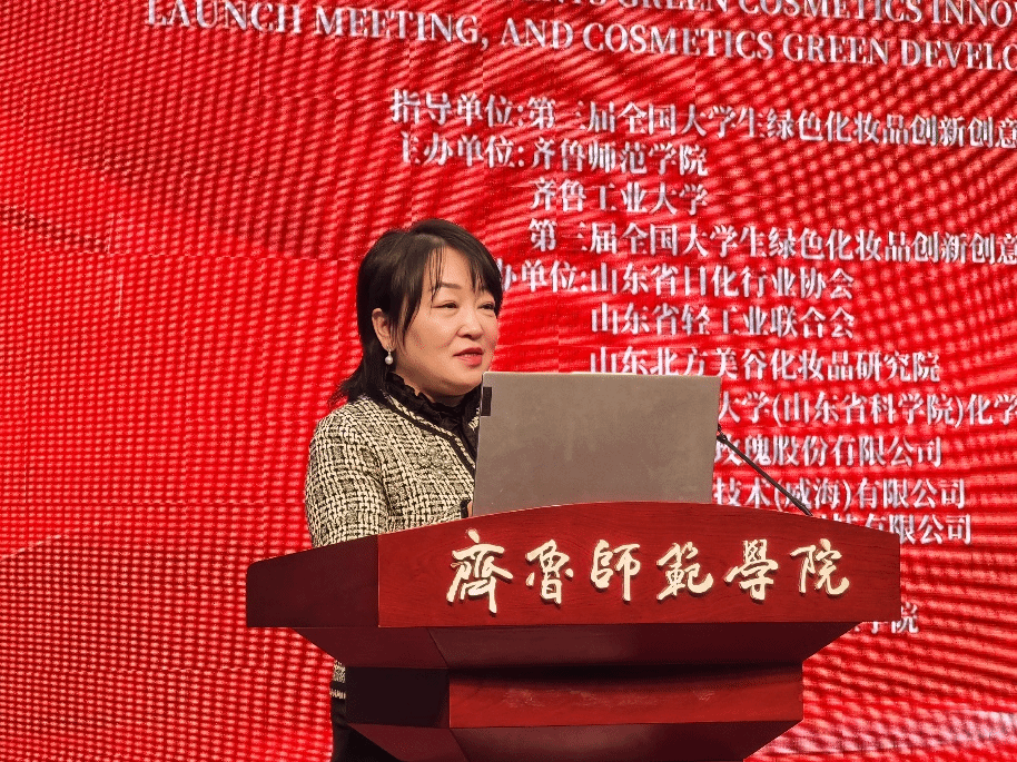 启动会后举办了绿色化妆品发展论坛。与会嘉宾聚焦化妆品科研、生产、检测以及包装设计等领域,积极交流分享问题思考和研究成果。润辉生物技术(威海)有限公司董事长姬胜利,山东大学化学与化工学院教授崔基炜,山东福瑞达生物科技有限公司营销中心总经理靳明,山东省食品药品检验研究院保化室主任李启艳,BEAT365英国官网化学与化工学院主任药师马玉奎,临沂大学医学院副教授李海刚,齐鲁工业大学化学与制药工程学院副教授周明扬,BEAT365英国官网美术学院副教授杨波,山东花物堂生物科技有限公司半亩花田科学传播负责人翟文丽分别作交流分享。