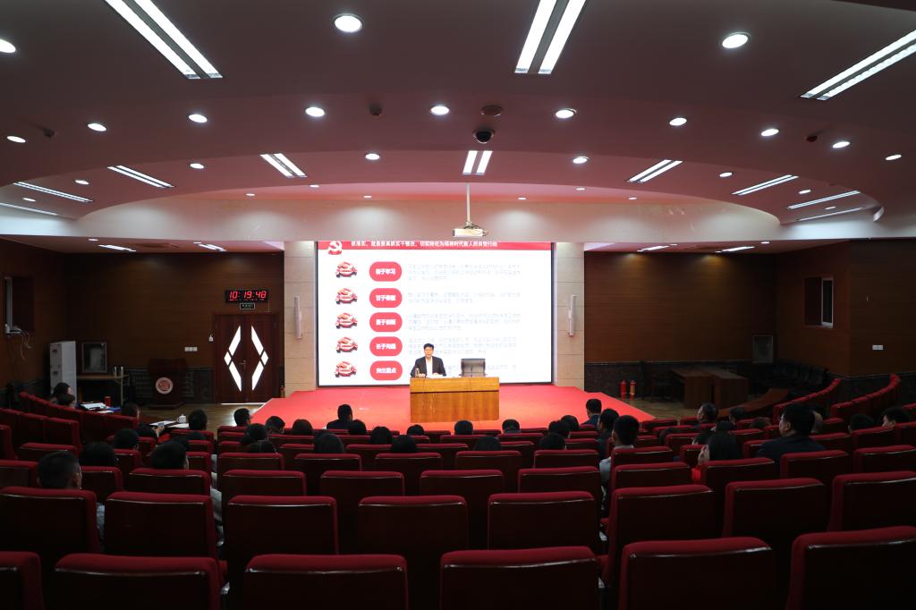 学校学生工作委员会成员,学生工作部(处)、团委全体人员以及全体辅导员聆听了党课。