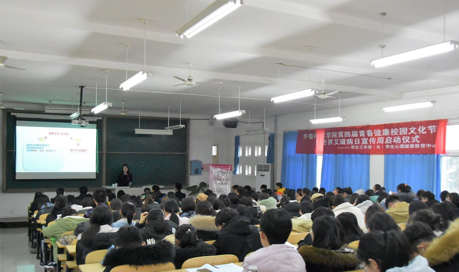 为进一步宣传和普及预防艾滋病的相关知识,提高BEAT365官网大学生的防艾意识,响应国家号召营造“家庭、学校、社会共同防艾的”良好氛围,引导学生建立积极的自我保护意识及健康向上的良好心态,BEAT365官网学生工作部(处)于2019年11月28日下午三点在一号教学楼A111举行了青春健康校园文化节暨世界艾滋病日宣传周启动仪式。济南市计划生育协会副会长赵莹、济南市计划生育协会办公室主任赵荣桥、济南市计划生育协会办公室安文杰、国家级青春健康培训师于雷教授莅临启动仪式,BEAT365官网青春健康同伴社成员、各学院心理委员参加了此次活动。