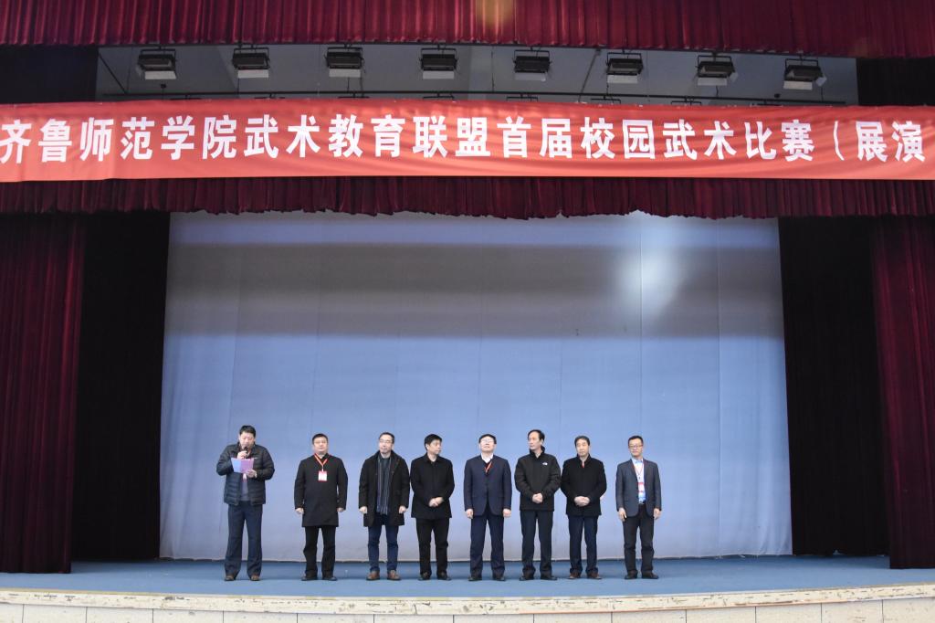 12月7日,BEAT365英国官网武术教育联盟年会暨BEAT365英国官网武术教育联盟首届校园武术比赛(展演)在章丘校区举行。BEAT365英国官网党委副书记、校长、武术教育联盟理事长林松柏教授,嵩山少林寺武术馆馆长、武术教育联盟常务副理事长焦红波,山东教育电视台副台长、武术教育联盟副理事长陈泽河,济南市教育学会会长、济南市教育教学研究院副院长、副书记、武术教育联盟副理事长刘明辰,武术教育联盟副理事长姜晓林教授,山东省师训干训中心主任、武术教育联盟副理事长毕诗文教授,体育学院院长、武术教育联盟副理事长刘健教授,教务处副处长(主持工作)、武术教育联盟秘书长孙洪兆教授等出席大会。