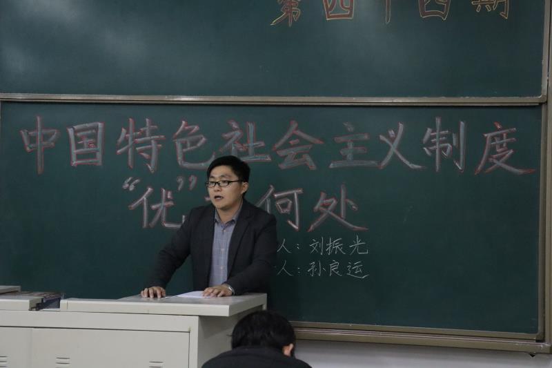 刘振光教授以“中国特色社会主义制度‘优’在何处”为题,按照“社会主义”“中国特色社会主义”“中国特色社会主义制度”的逻辑,重点讲述了“中国特色社会主义制度的优越性”。首先,刘振光教授介绍了党的十九届四中全会召开的时代背景和历史意义。其次,刘振光教授向同学们讲清楚了中国特色社会主义制度的十三个“显著优势”,即优在党的领导力量、优在以人民为中心的价值导向、优在一张蓝图绘到底的战略谋划、优在执行力、优在集中力量办大事的举国体制、优在组织体系、优在稳中求进的总基调、优在基本制度、优在民族团结、优在治国方略、优在党指挥枪、优在确保人民军队绝对忠诚于党和人民、优在确保国家主权和发展利益安全13个方面。最后,刘振光教授强调中国特色社会主义制度体系包括根本制度、基本制度、具体制度三个基本层次,并通过列举美国、香港社会的乱象进一步阐述了中国特色社会主义制度的优越性。