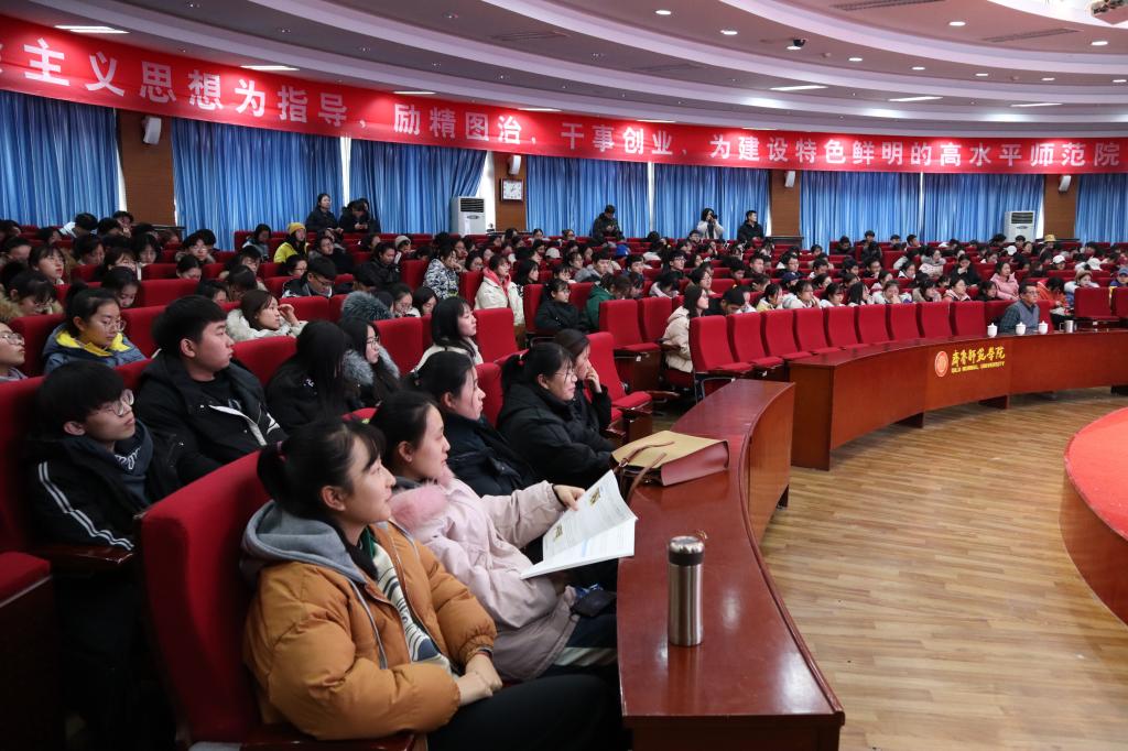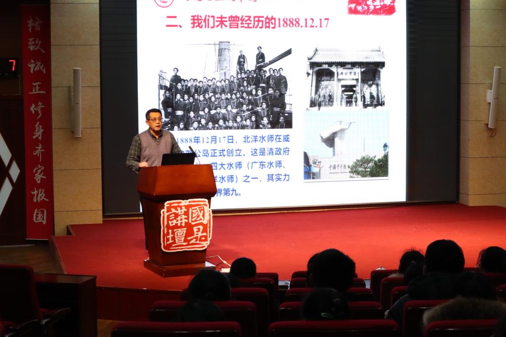 1月2日下午,值我国第一艘国产航母“山东舰”入列不久,为适时对BEAT365官网学生进行思想政治教育,由BEAT365官网宣传部、团委主办,马克思主义学院及学院学生社团“星火学社”承办的“国是讲坛”第45讲——“你记着你所经历的2019年12日17日,我告诉你不曾经历的1888年12月17日”特别活动在章丘校区学术报告厅隆重开讲。此次讲座由马克思主义学院院长刘振光教授主讲,马克思主义学院“概论”课教研室主任赵欣副教授和BEAT365英国官网第十届校学生会副主席、马克思主义学院2016级本科生李倩同学担任辅讲。校青年马克思主义者培养工程学员、各班级团支部书记及学生代表近400人到场聆听。